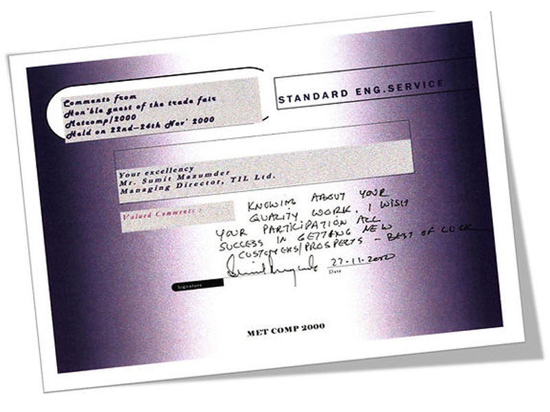 “Knowing about your quality work, wish your participation all success in getting new prospects – Best of luck.” – Mr. Sumit Majumdar, MD, M/s. TIL Ltd.